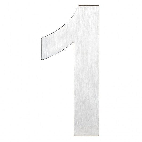 Cyfra "1" o wysokości 155 mm i grubości 2 mm wykonana ze stali nierdzewnej. Dostarczana w zestawie wraz z wkrętami do montażu naściennego.