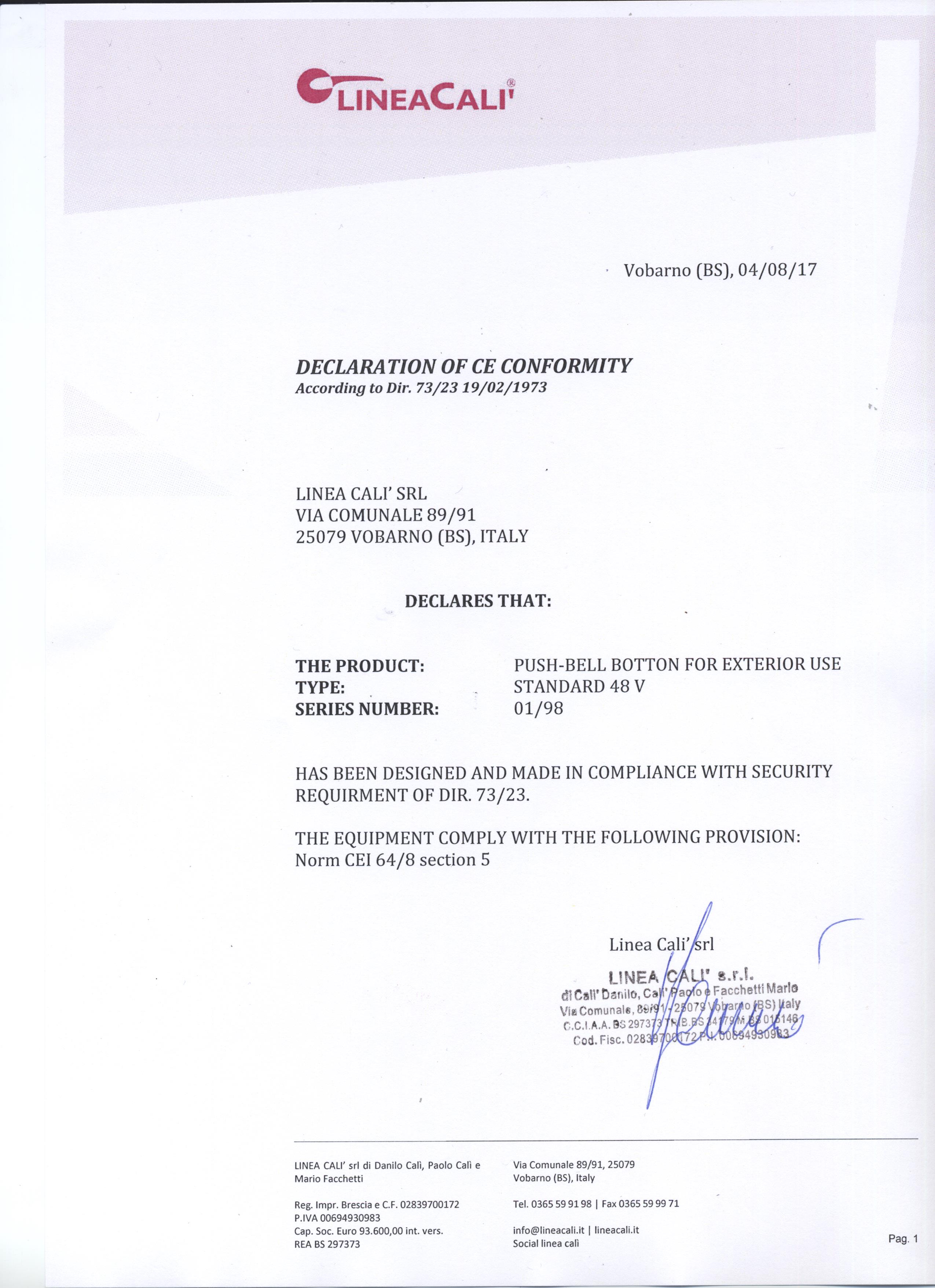 - Przycisk do dzwonka uznanej włoskiej marki Linea Cali.