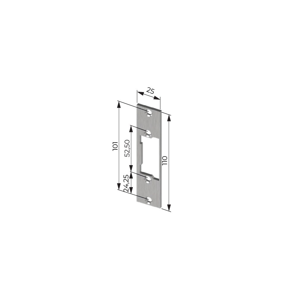 - Blacha czołowa o wymiarach 25x95 mm dedykowana do montażu elektrozaczepu 99 TOP marki Dorcas.