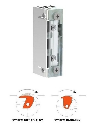 Elektrozaczep pracujący w trybie standardowym z możliwością zasilania prądem stałym / zmiennym o napięciu 10 - 24 V AC/DC. Odpowiedni do zastosowania w drzwiach profilowych oraz drewnianych. Wyposażony w zapadkę radialną z regulacją oraz system Top Double zapewniający prowadzenie zaczepu zamka.