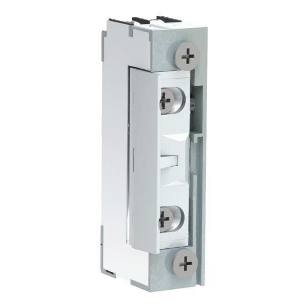 Elektrozaczep z możliwością zasilania prądem stałym / zmiennym o napięciu 10 - 24 V AC/DC. Pracuje w trybie standardowym i jest dedykowany do zastosowania w drzwiach profilowych wykonanych z aluminium, PCV oraz w drzwiach drewnianych. Wyposażony w zapadkę z regulacją oraz pamięć.