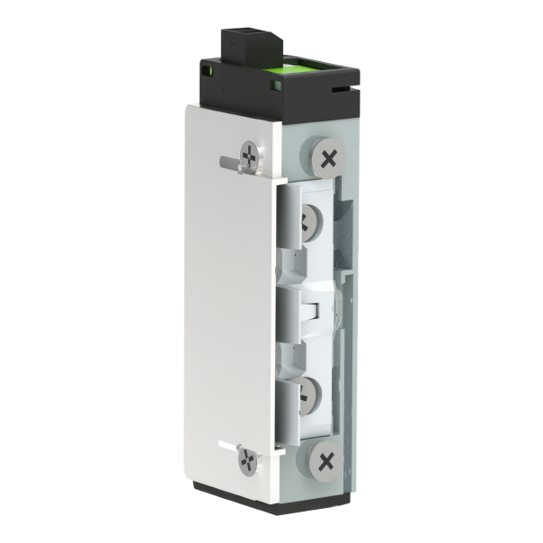 Elektrozaczep z pamięcią zasilany prądem stałym o napięciu 12-24 V. Dedykowany do zastosowania w drzwiach akustycznych posiadających dodatkowe uszczelnienia oraz w drzwiach, na których zainstalowane zostały uszczelki obwiedniowe. Wyposażony w zapadkę z regulacją i monitoringiem oraz system Top Double ułatwiający wyślizg zapadki i zapewniający prowadzenie zaczepu zamka.