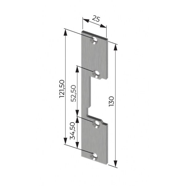 - Blacha czołowa o wymiarach 25x130 mm dedykowana do montażu elektrozaczepu 50/52 marki Dorcas.
