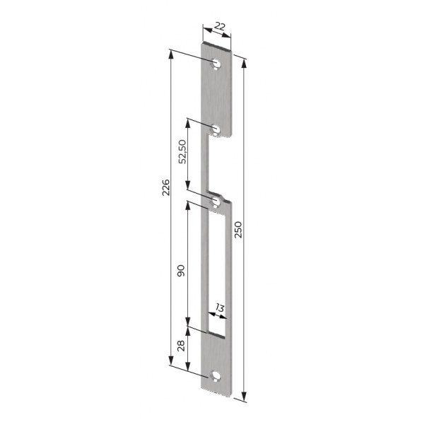 - Blacha czołowa o wymiarach 22x250 mm dedykowana do montażu elektrozaczepu 99 marki Dorcas.