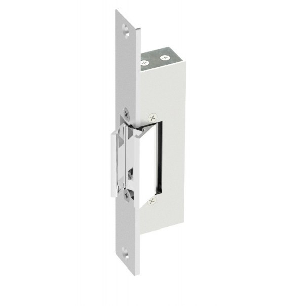 Model elektrozaczepu zasilany prądem stałym 24V DC i dedykowany do zastosowania w drzwiach całoszklanych o maksymalnej grubości tafli 12 mm. Został przetestowany na 200 000 cykli pracy.