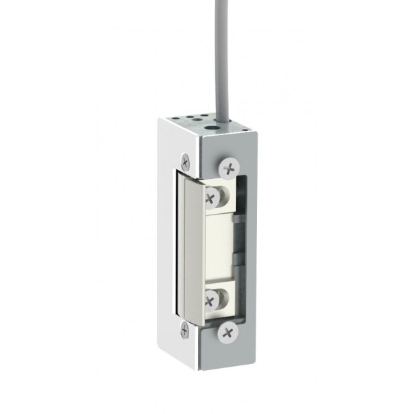 Model elektrozaczepu zasilany prądem zmiennym 8-12V AC i dedykowany do zastosowania w drzwiach obiektowych. Symetryczna budowa sprawia, że można zainstalować go zarówno w prawych, jak i lewych skrzydłach drzwi. Dodatkowo istnieje możliwość regulacji położenia zapadki.
