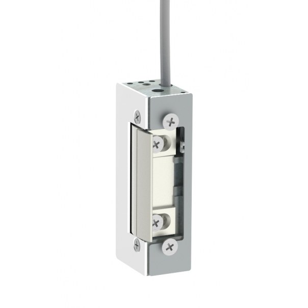 Model elektrozaczepu zasilany prądem stałym 12V DC i dedykowany do zastosowania w drzwiach obiektowych. Symetryczna budowa sprawia, że można zainstalować go zarówno w prawych, jak i lewych skrzydłach drzwi. Dodatkowo istnieje możliwość regulacji położenia zapadki.