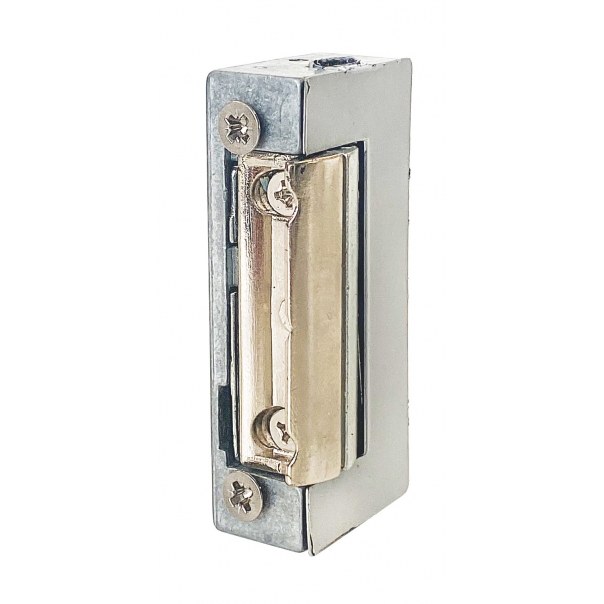 Model elektrozaczepu, który może być zasilany prądem stałym / zmiennym 8-12V AC/DC i jest dedykowany do zastosowania w drzwiach profilowych wykonanych z aluminium / PCV oraz w drzwiach drewnianych. Symetryczna budowa sprawia, że można zainstalować go zarówno w prawych, jak i lewych skrzydłach drzwi.