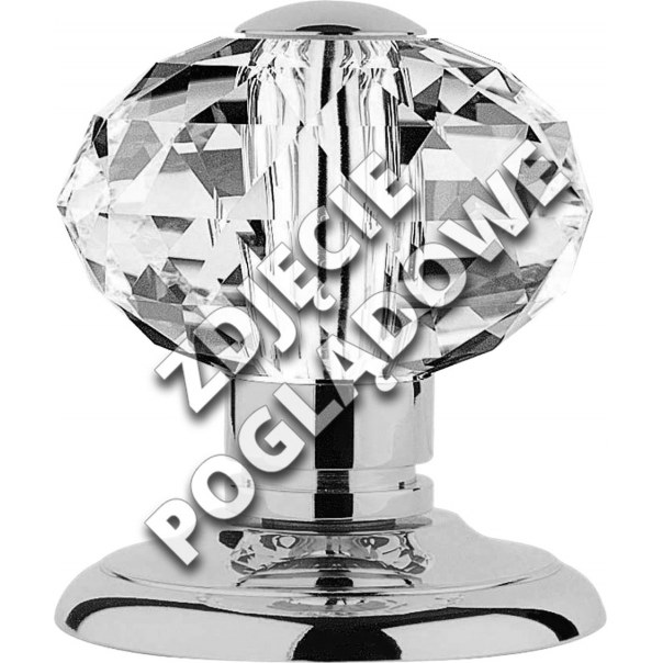 Komplet gałek obrotowych ozdobionych kryształami Swarovski i dedykowanych do montażu na drzwiach drewnianych. Obie gałki są wykonane z mosiądzu i posiadają wykończenie CR - chromowane.