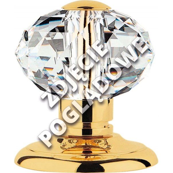Gałka stała ozdobiona kryształem Swarovski i dedykowana do montażu na drzwiach drewnianych. Jest wykonana z mosiądzu i posiada wykończenie OZ - pozłacane.