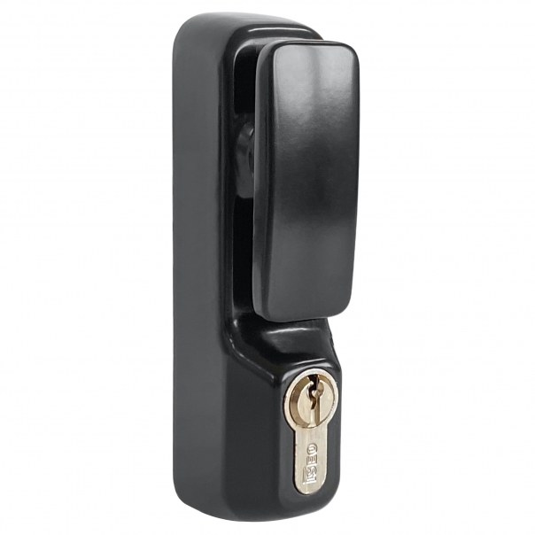 Uchwyt obrotowy z wkładką bębenkową. Dedykowany do zastosowania jako okucie zewnętrzne do zamknięć ewakuacyjnych. Dostępny w wykończeniu w kolorze czarnym.