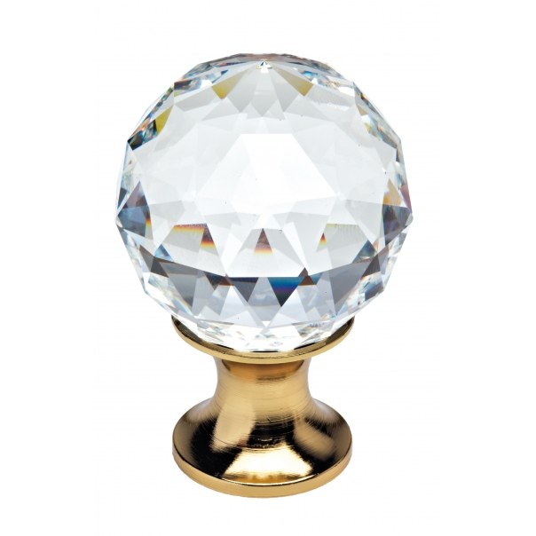 Prezentowana gałka meblowa Crystal została wykonana z mosiądzu i występuje w wykończeniu pozłacanym.