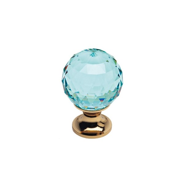 Prezentowana gałka meblowa Crystal Verde Antico została wykonana z mosiądzu i występuje w wykończeniu pozłacanym.