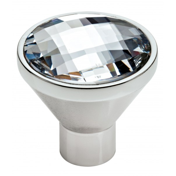 Mosiężna gałka meblowa o średnicy Ø34 mm. Jej charakterystycznym elementem jest duży, starannie oszlifowany kryształ marki Swarovski. Ponadczasowy design i prosta forma sprawiają, że gałka idealnie prezentuje się na meblach, znajdujących się we wnętrzach urządzonych zarówno w klasycznym, jak i w nowoczesnym stylu.