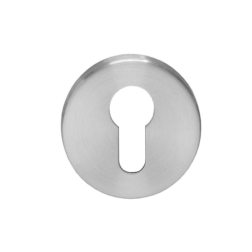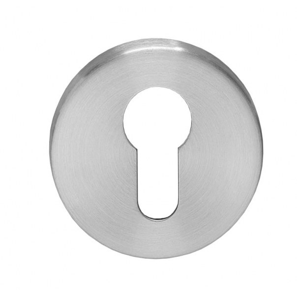 Wykonany ze stali nierdzewnej AISI 304 dolny szyld okrągły z otworem na wkładkę bębenkową.