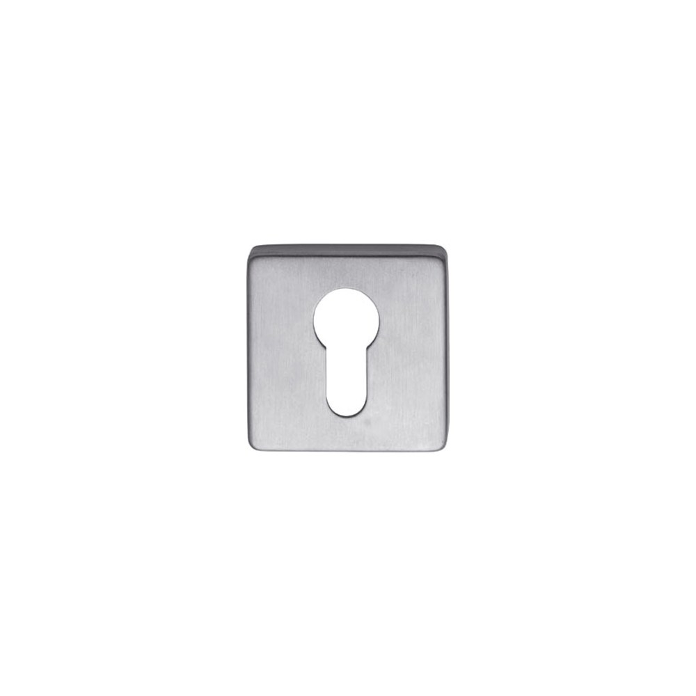 Wykonany ze stali nierdzewnej kwadratowy szyld z otworem na wkładkę bębenkową.
