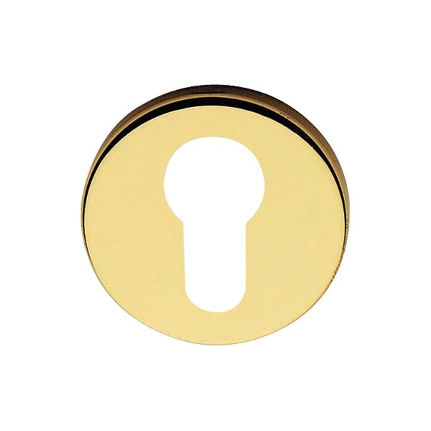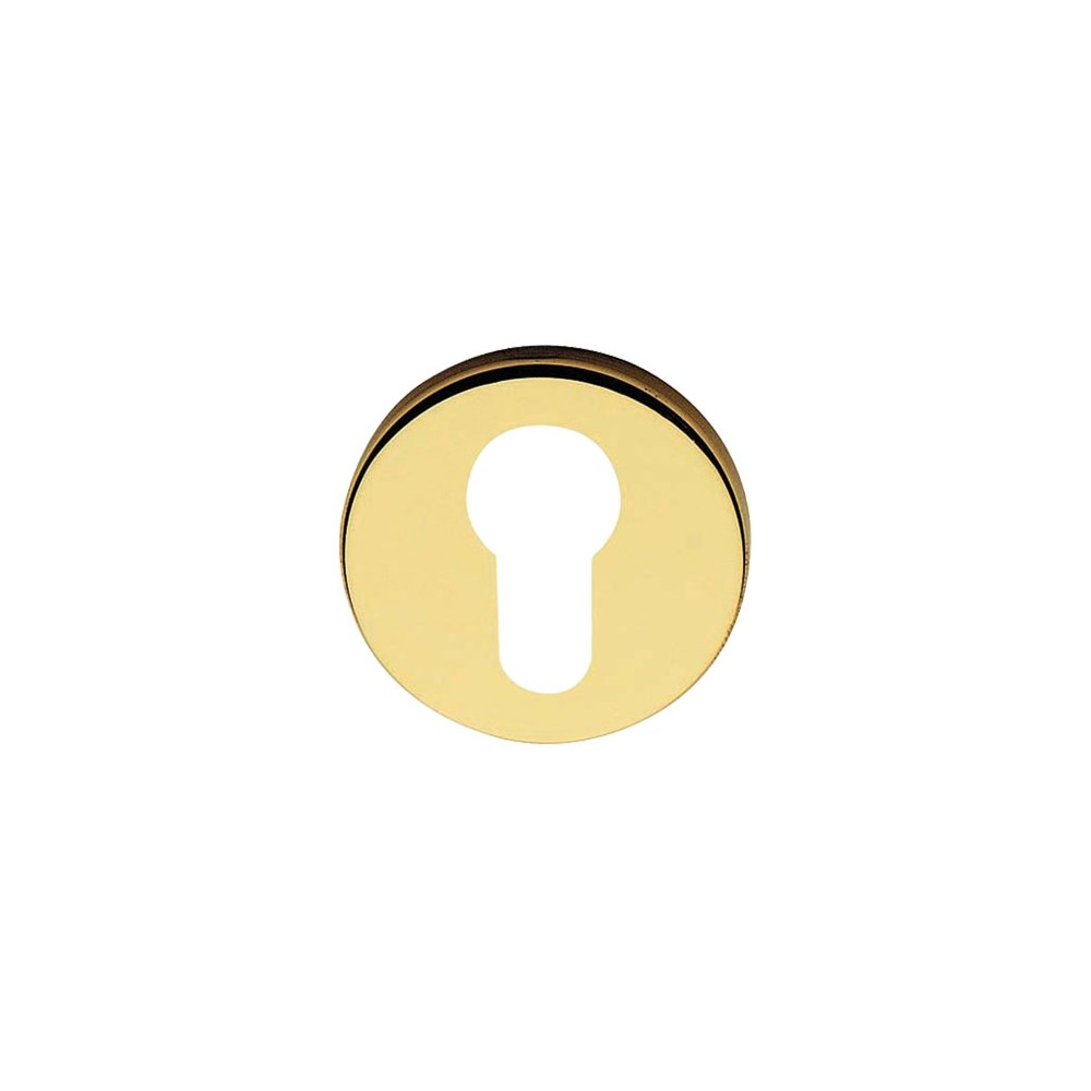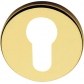 Okrągły szyld z otworem na wkładkę bębenkową. Wykonany z mosiądzu i montowany na śruby i wkręty.