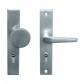 Asymetryczna klamko-gałka na długim szyldzie z otworem na wkładkę bębenkową. Wykonana z aluminium i odpowiednia do zastosowania w drzwiach antywłamaniowych.