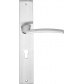 Komplet klamek na długich szyldach z otworem na wkładkę bębenkową, akcesoria montażowe.