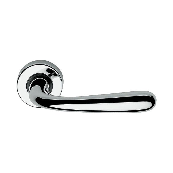 Dekoracyjna klamka drzwiowa na okrągłym szyldzie, charakteryzująca się prostym stylem. Stanowi znakomite uzupełnienie każdych drzwi wewnętrznych w domu, mieszkaniu, biurze czy urzędzie.