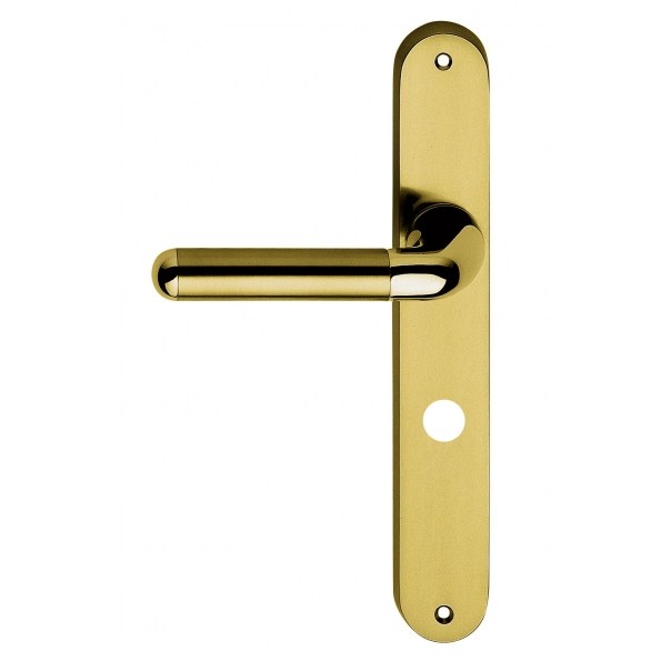 Klamka dekoracyjna na długim szyldzie o wymiarach 40x250 mm z blokadą WC. Wykonana z mosiądzu, posiada wykończenie OT - mosiądzowane matowe lakierowane + mosiądzowane lakierowane.