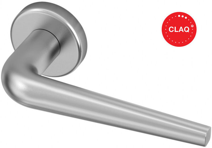 Wykonana ze stali nierdzewnej AISI304 klamka wyposażona w bezimbusowy system montażu CLAQ z automatycznym pozycjonowaniem trzpienia.