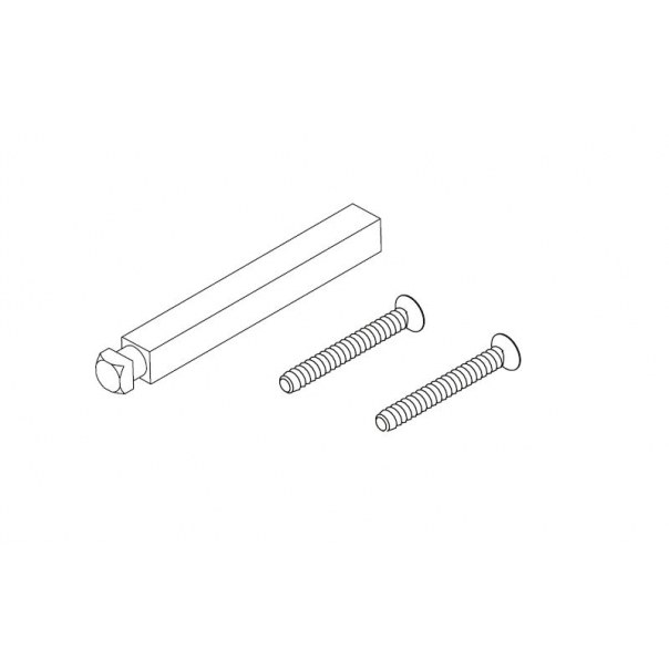 Zestaw mocujący do klamki serii MA1A obejmujący trzpień o kwadracie ⧄ 8 mm oraz dwie śruby M5 z zabezpieczeniem gwintu. Odpowiedni do zastosowania w skrzydle drzwiowym o grubości od 70 do 80 mm.