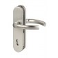 Klamka drzwiowa Logo na długim szyldzie z otworem na wkładkę bębenkową. Dostępna w wykończeniu anodyzowanym srebrnym (F1).