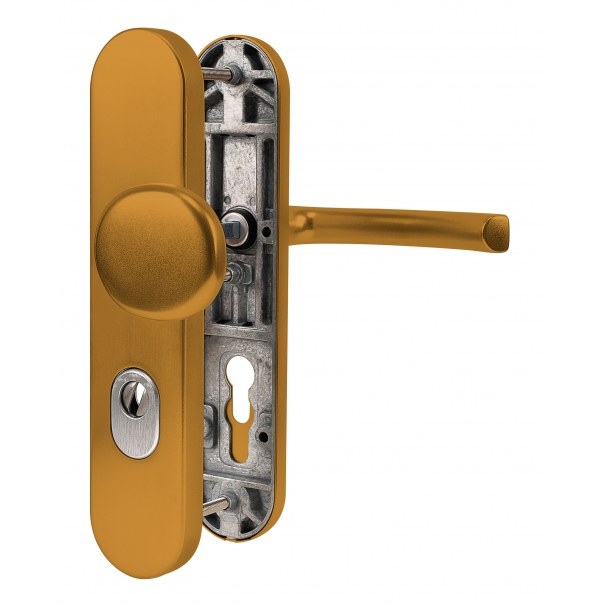 Posiada trzpień ⧄ 10 mm. Ze względu na zastosowany materiał - aluminium - może być również stosowana na zewnątrz pomieszczeń. Z kolei dzięki śrubom montażowym ukrytym od strony zewnętrznej, z powodzeniem może być montowana w drzwiach przeciwwłamaniowych.