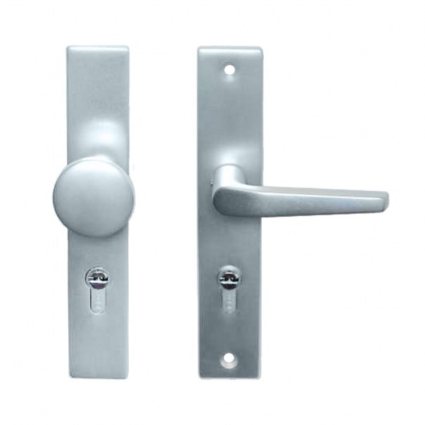 - Klamko-gałka symetryczna na długim szyldzie o wymiarach 50x250 mm.