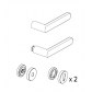 Opakowanie zawiera: rękojeść zewnętrzną, rękojeść wewnętrzną, płytkę montażowa ze wzmocnioną sprężyną i obudową dedykowaną do montażu od strony wewnętrznej drzwi oraz parę szyldów wraz z nakładkami.