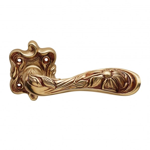 Klamka do drzwi ozdobiona elementami nawiązującymi do świata przyrody. Oryginalna forma rękojeści przyciąga wzrok, ale oprócz tego jest również funkcjonalna. Prezentowany model jest uniwersalny i może być montowany zarówno w drzwiach prawych, jak i lewych. Występuje w wykończeniu stare złoto (francuskie).