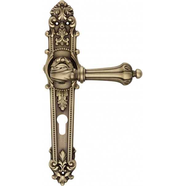 Mosiężna klamka dekoracyjna zaprojektowana w stylu barokowym. Charakteryzuje się najwyższą jakością wykonania oraz cichą pracą.