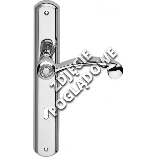 Prezentowany model klamki jest dostępny w wersji na długim szyldzie z otworem na klucz i występuje w wykończeniu chromowanym matowym.