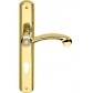 Prezentowany model klamki jest dostępny w wersji na długim szyldzie z otworem na wkładkę i występuje w wykończeniu pozłacanym.