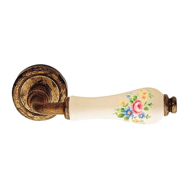 KLAMKA DALIA PORCELLANA AVORIO FIORE ROSA SZYLD OKRĄGŁY 103 AN
