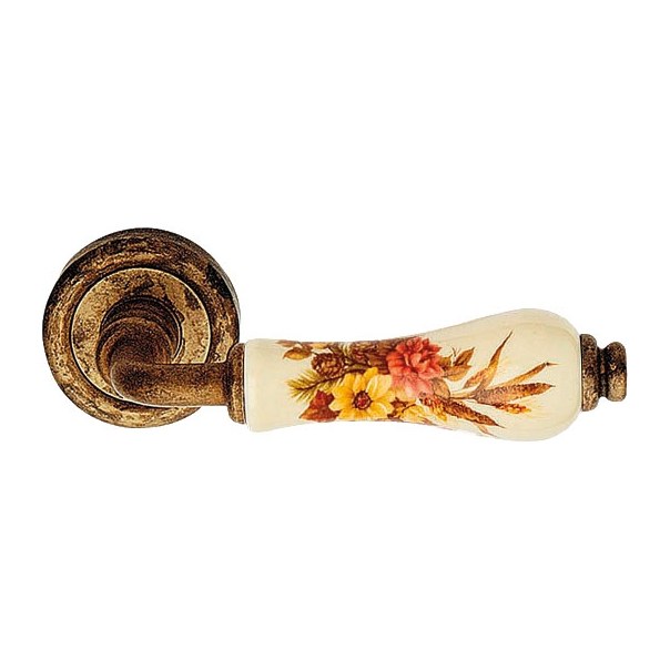 KLAMKA DALIA PORCELLANA FIORE MARRONE SZYLD OKRĄGŁY 103 AN