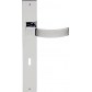 Klamka drzwiowa na długim szyldzie z otworem na klucz. Montowana na śruby i wkręty. Wykonana z mosiądzu i dostępna w wykończeniu chromowanym i chromowanym piaskowanym.