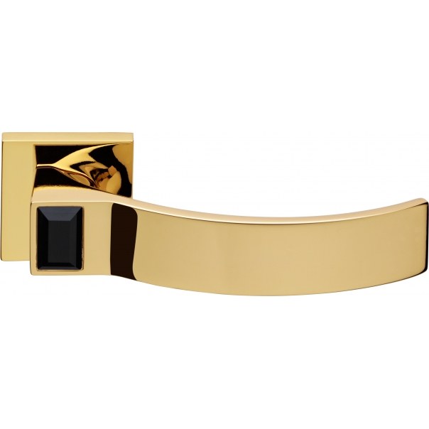 Prezentowany model klamki jest dostępny w wersji na kwadratowym szyldzie i występuje w wykończeniu pozłacanym.