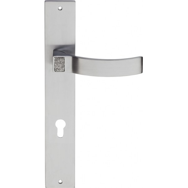 Prezentowany model klamki jest dostępny w wersji na długim szyldzie z otworem na wkładkę bębenkową i występuje w wykończeniu chromowanym matowym.
