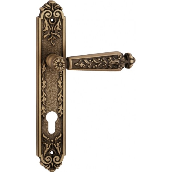 Epoca to reprezentująca kolekcję Vintage bogato zdobiona, elegancka klamka do drzwi na długim szyldzie z otworem na wkładkę bębenkową. Jej wzornictwo i wykończenie nawiązuje do doskonale znanego i cenionego na całym świecie stylu Ludwika XVI.