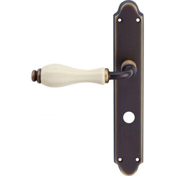 Klamka drzwiowa Erica Porcellana Avorio jest wykonana z mosiądzu i występuje w wykończeniu brązowionym matowym (ciemnym).