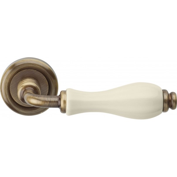 Klamka drzwiowa Erica Porcellana Avorio jest wykonana z mosiądzu i występuje w wykończeniu brązowionym przecieranym.