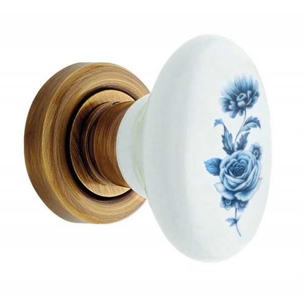 KLAMKA FLAVIA PORCELLANA FIORE BLU SZYLD OKRĄGŁY 103 OG