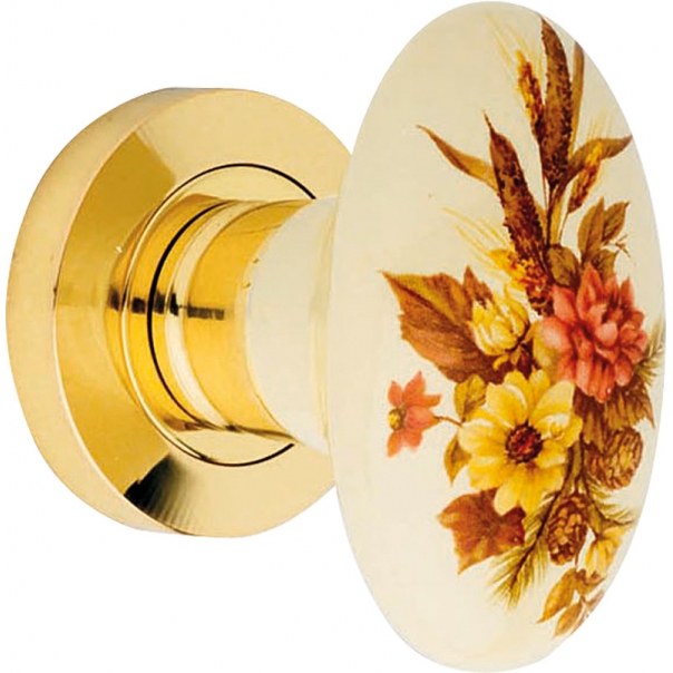 KLAMKA FLAVIA PORCELLANA FIORE MARRONE SZYLD OKRĄGŁY 102 OL