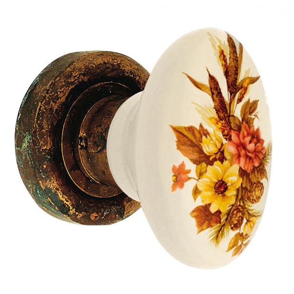 KLAMKA FLAVIA PORCELLANA FIORE MARRONE SZYLD OKRĄGŁY 103 AN