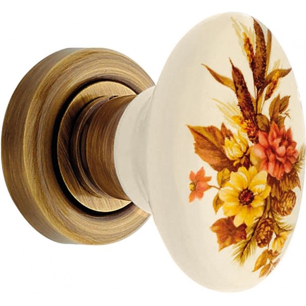 KLAMKA FLAVIA PORCELLANA FIORE MARRONE SZYLD OKRĄGŁY 103 OG