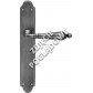Klamka posiada długi szyld o wymiarach 40x240 mm bez otworu. Została wykonana z mosiądzu i jest dostępna w wykończeniu patynowanym stare srebro.