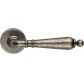Klamka posiada okrągły szyld o średnicy Ø 50 mm. Została wykonana z mosiądzu i jest dostępna w wykończeniu patynowanym stare srebro.