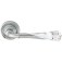 Elegancka klamka dekoracyjna na okrągłym szyldzie o średnicy Ø 50 mm. Wykonana z mosiądzu i dostępna w wykończeniu chromowanym.